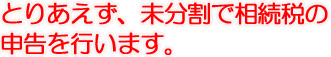 申告期限(相続の開始の翌日から10ヶ月以内)までに分割が確定しない場合は、未分割財産を法定相続分で、各相続人がとりあえず相続税を払う必要があります。